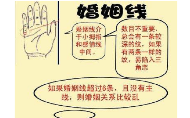 一个人会拥有什么样的感情生活,会拥有什么样的婚姻生活都是可以从一个人的手相婚姻线图解中分析出来的,所以通过以上的文章大家知道自己会拥有什么样的婚姻生活了吗?如果还是不知道,那么可以找命理老师