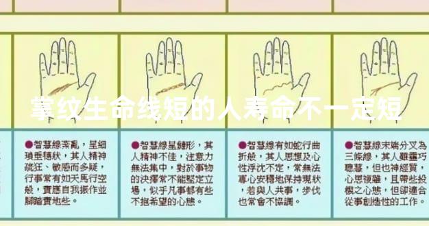 所以说,一个人的掌纹生命线很短并不就一定代表着寿命很短,也正像是老师