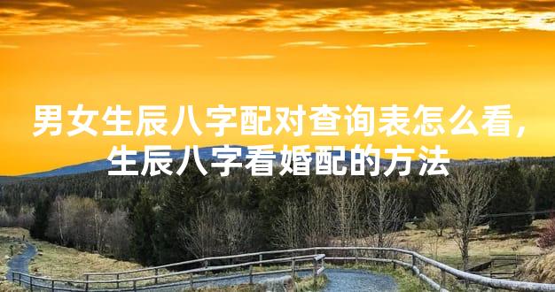 很多人都想知道自己的另一半是不是和自己命中的那个人结婚,但是有些人却不知道自己应该怎么办,因为他们担心对方会出轨,而且还会让两个人的感情破裂。那么,男女生辰八字配对查询表怎么看?下面我们一起来看看吧。1、看生肖在我国,生肖是我们日常生活中很重要的部分,所以每个人都有属于自己的属相,